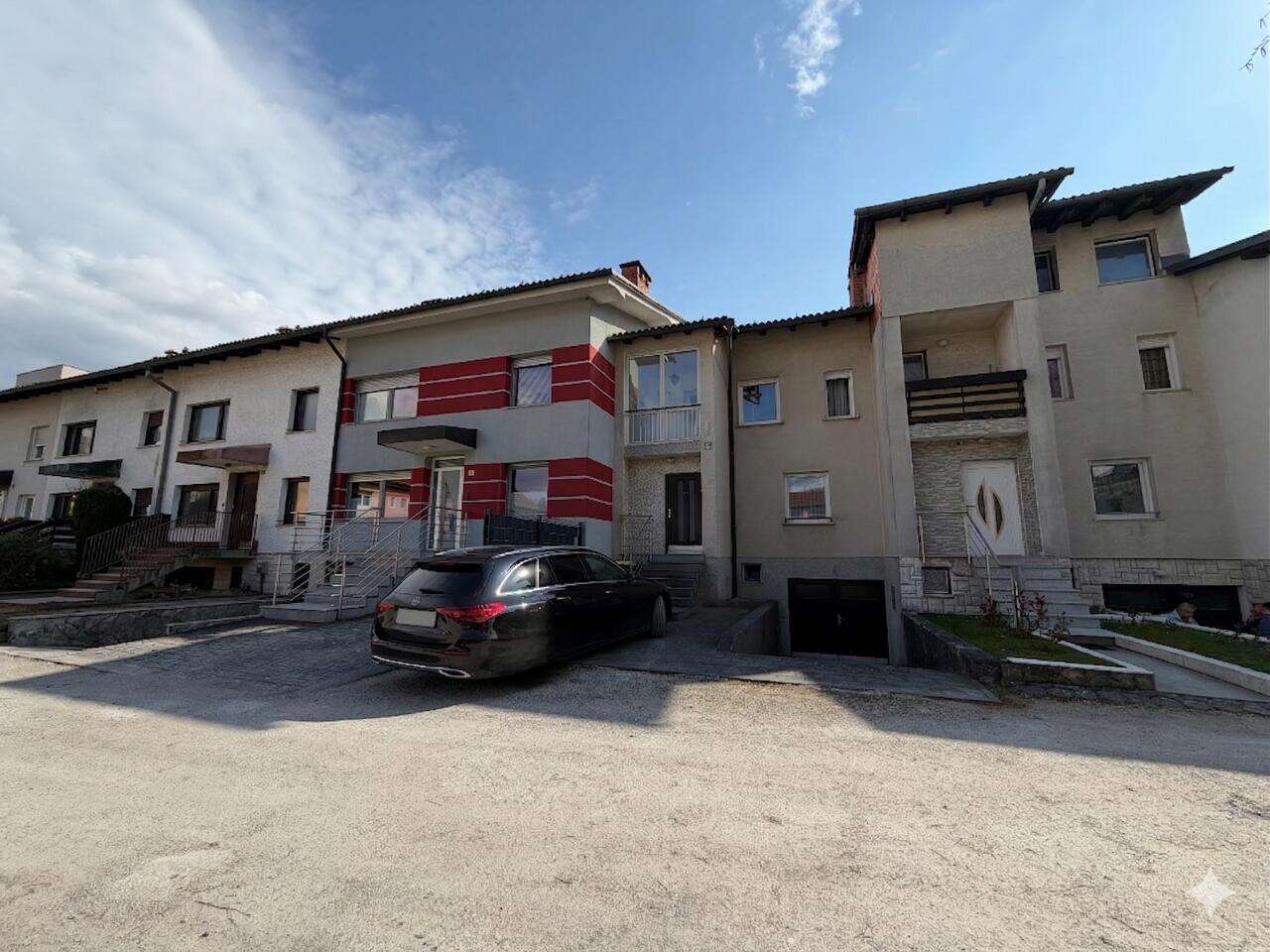 У дома есть два выделенных парковочных места и гараж. Удобное расположение позволяет всего за несколько минут пешком добраться до магазина, детского сада и автобусной остановки. Район Чрнуче идеально сочетает в себе спокойствие, близость к природе и легкий доступ к центру Любляны благодаря близости к окружной дороге.