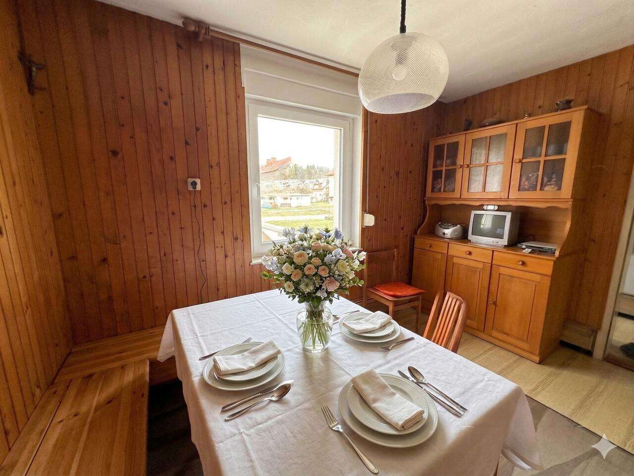 В продаже находится уютный дом с террасой, общей площадью 177 м², расположенный в тихом и благоустроенном районе Чрнуче. Построенный в 1975 году, а обновленный в 2011 году, этот дом обеспечивает комфортное проживание с обилием естественного света, благодаря своей ориентации север-юг. Площадь земельного участка составляет 153 м².