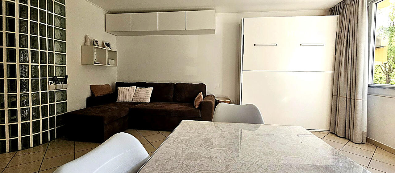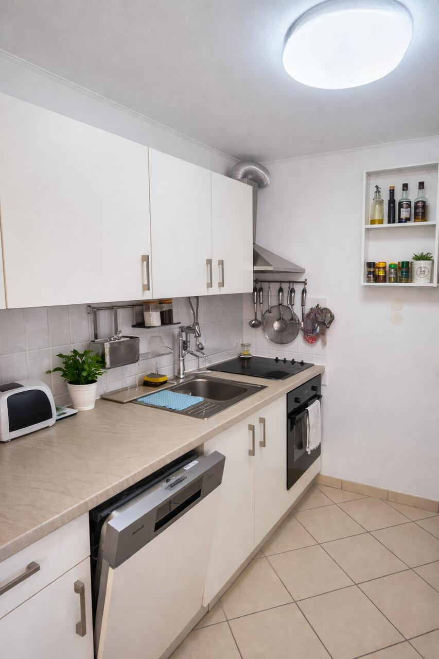 Квартира располагает функционально обоснованной планировкой, включающей прихожую, санузел, спальню и дневную зону, где соединены гостиная, столовая и кухня. В наличии также кладовка и совместное пространство для хранения велосипедов. Готовность объекта к немедленному въезду, без необходимости в дополнительных вложениях, повышает его привлекательность. Среди последних обновлений - новые стеклопакеты, система кондиционирования и модернизированный санузел. Полное обновление всех инженерных коммуникаций, а также крыши и фасадов, было завершено в 2005 году.