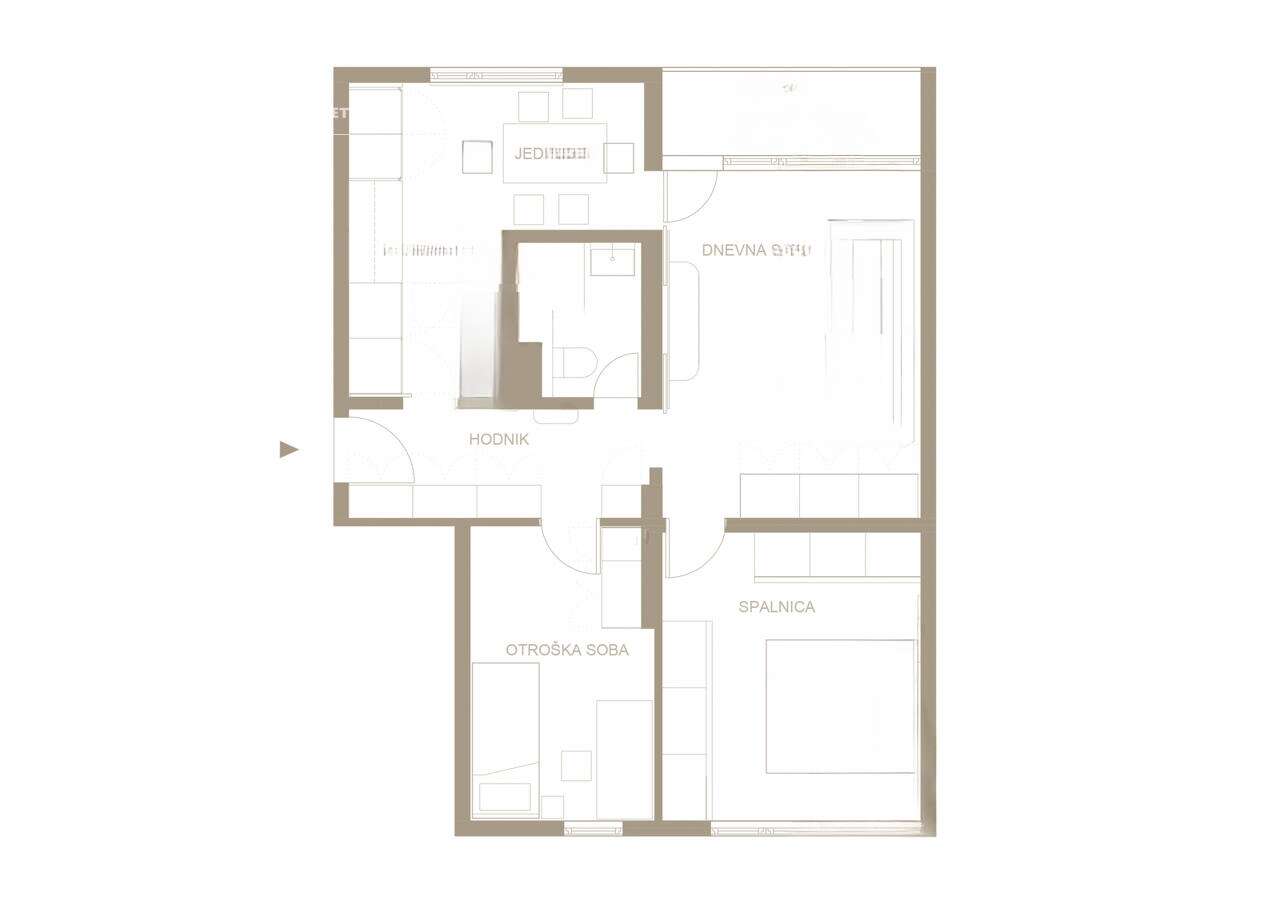 На продажу выставлена современная и совершенно обновленная трехкомнатная квартира в престижном районе Шишка, близ центра. С общей площадью 74,6 м², она расположена на четвертом, верхнем этаже здания и готова к заселению.