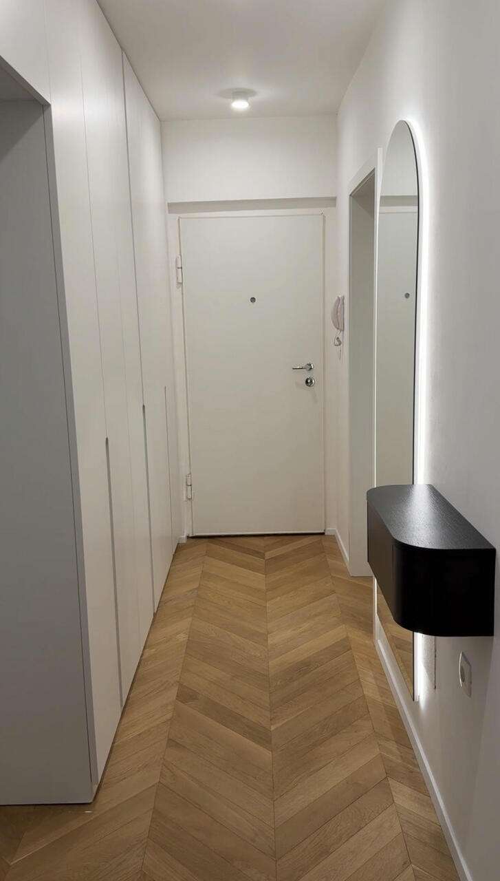 Комфорт проживания обеспечивают новейшие трехслойные окна с москитными сетками и жалюзи, кондиционер, центральное отопление с радиаторами и термостатами, а также теплые полы на кухне и в ванной. Для безопасности установлены бронедверь и домофон. Оптоволоконный интернет уже подключен.