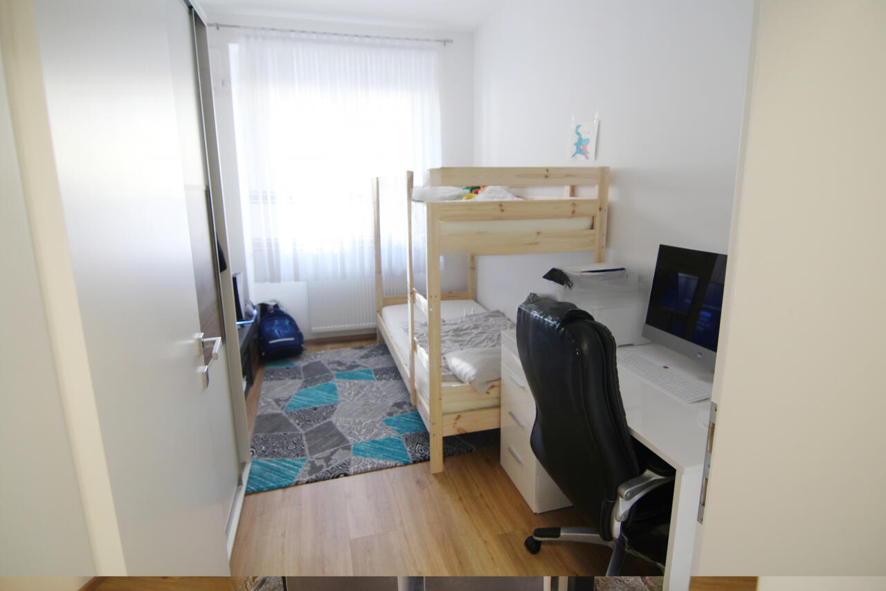 Просторная планировка включает в себя гостиную, кухню с обеденной зоной, ведущей на застекленный балкон, прихожую, детскую комнату, спальню и ванную. Кроме того, в распоряжении жильцов находится кладовая площадью 4 м². Возле здания есть одно парковочное место, а дополнительное паркоместо можно легко найти поблизости.