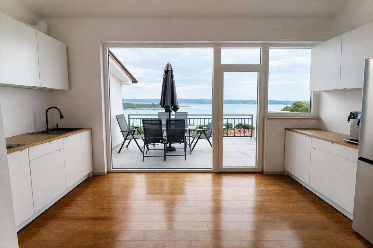 Представляем вашему вниманию просторный пентхаус с тремя комнатами, который находится на удивительно тихой и живописной территории над Порторожем, между Шентьянами и Белым крестом. Это уникальная возможность приобрести недвижимость, сочетающую в себе комфорт квартиры и очарование дома, благодаря независимому входу и большому частному саду. Из окон открываются захватывающие виды на Пиранский залив, простирающийся до Савудрии, добавляя уют вашему образу жизни.