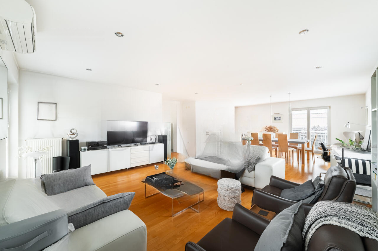 Общая площадь объекта достигает 147,1 м², включая гараж и кладовые. Квартира предлагается полностью обставленной, с качественной мебелью и всей необходимой техникой, включая оборудование на кухне.