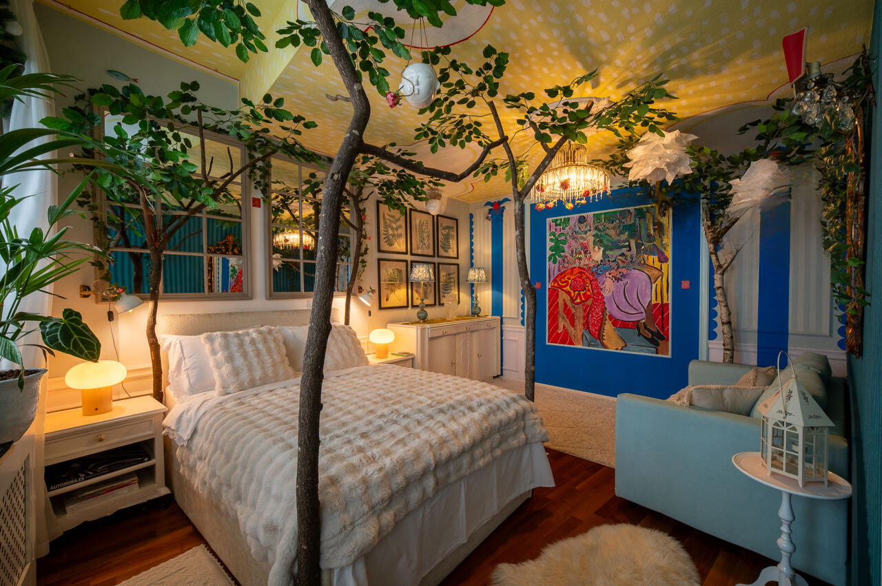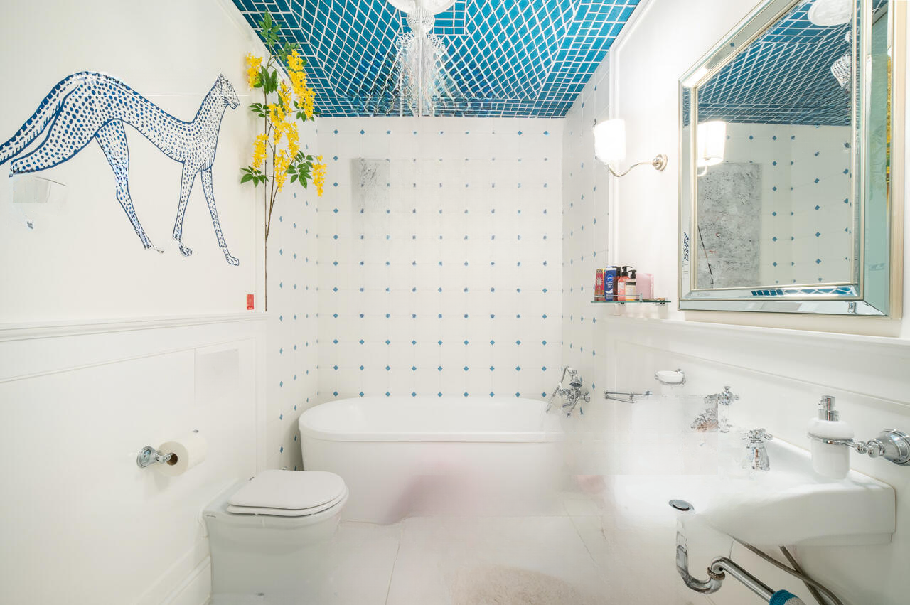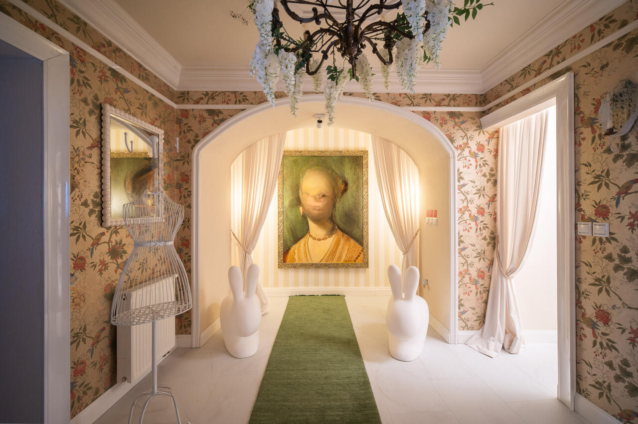 Интерьер выполнен с тщательным вниманием к деталям: высокие потолки, утончённые лепные украшения, ручная роспись стен, впечатляющие произведения искусства и специально подобранная мебель делают каждое помещение уникальным, формируя гармоничное и сбалансированное целое. В квартире установлены кондиционер и система газового отопления. Здание было реконструировано: в 2002 году были обновлены фасад и крыша.