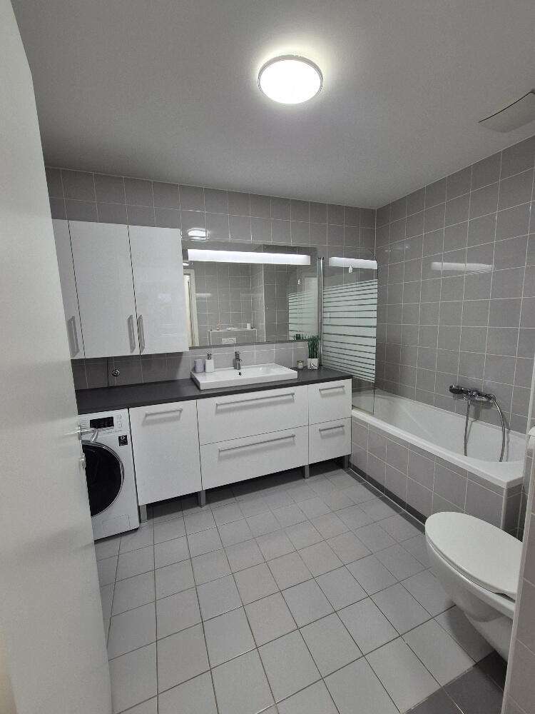 - Ванная комната: оборудована ванной, встроенной мебелью и стиральной машиной с функцией сушки.